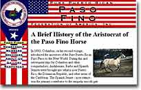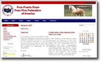 The Pure Puerto Rican Paso Fino Federation of America is dedicated to the preservation of this beautiful breed with a uniquely smooth gait. This site can be viewed at www.puertoricanpasofino.org/. Note the tying together of the US & Puerto Rican flags with the PPRPFFA logo. |