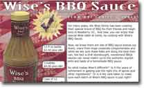 The Wise family has been making fine southern BBQ for generations and is now offering that distinctive Wise's taste in their signature BBQ sauce. You can purchase some at their new website. |